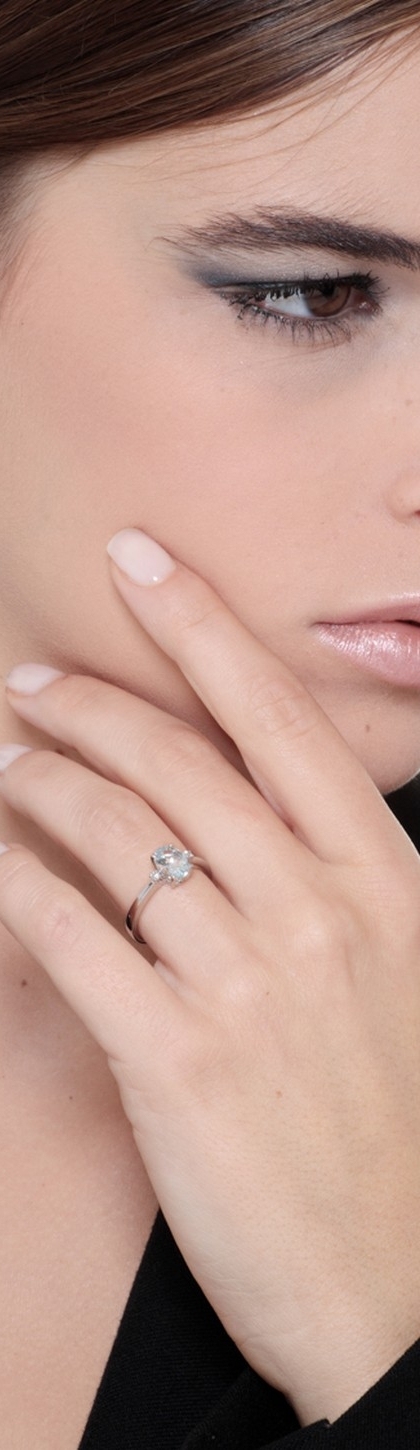 Bague pour femme en or blanc 18k avec aigue-marine ovale et diamants