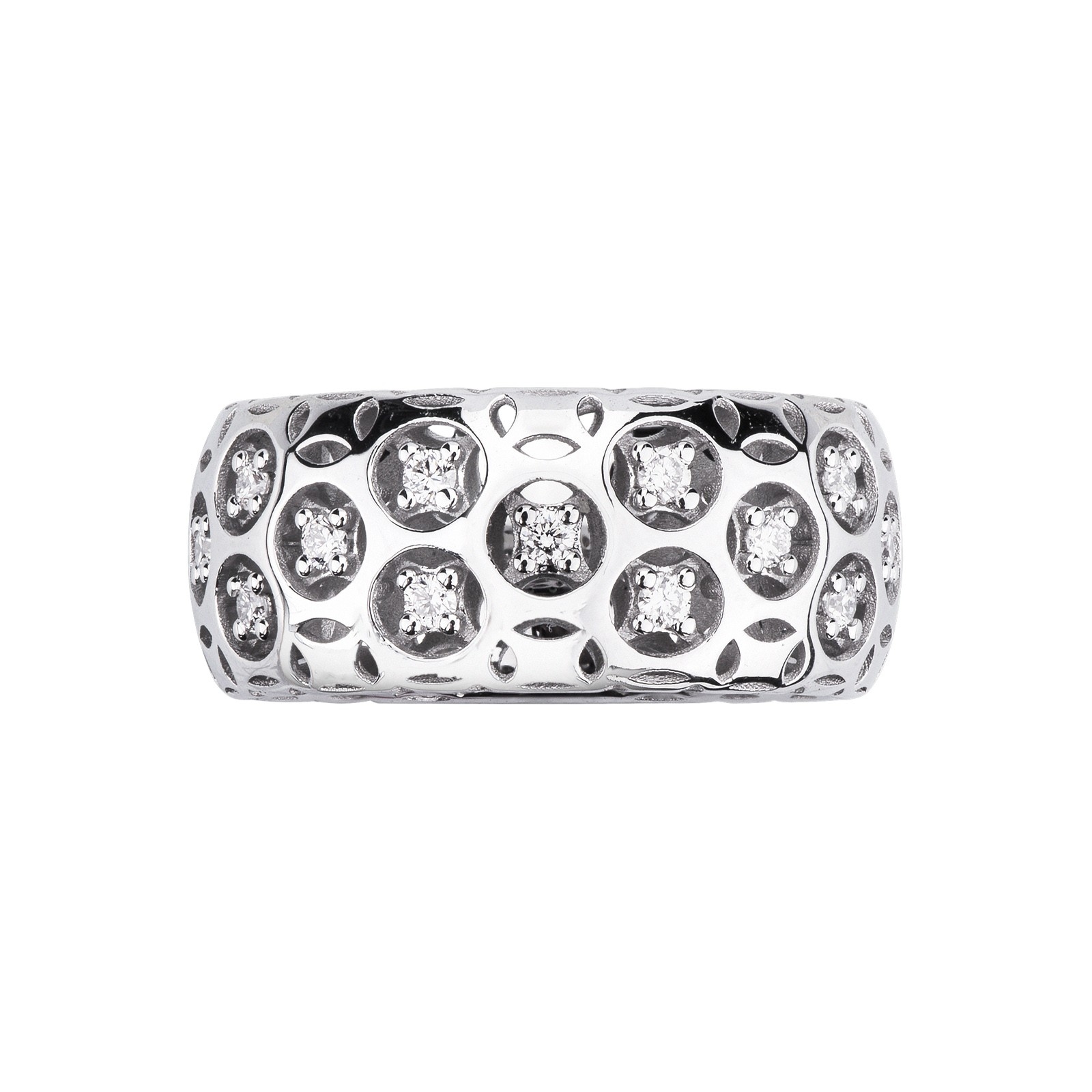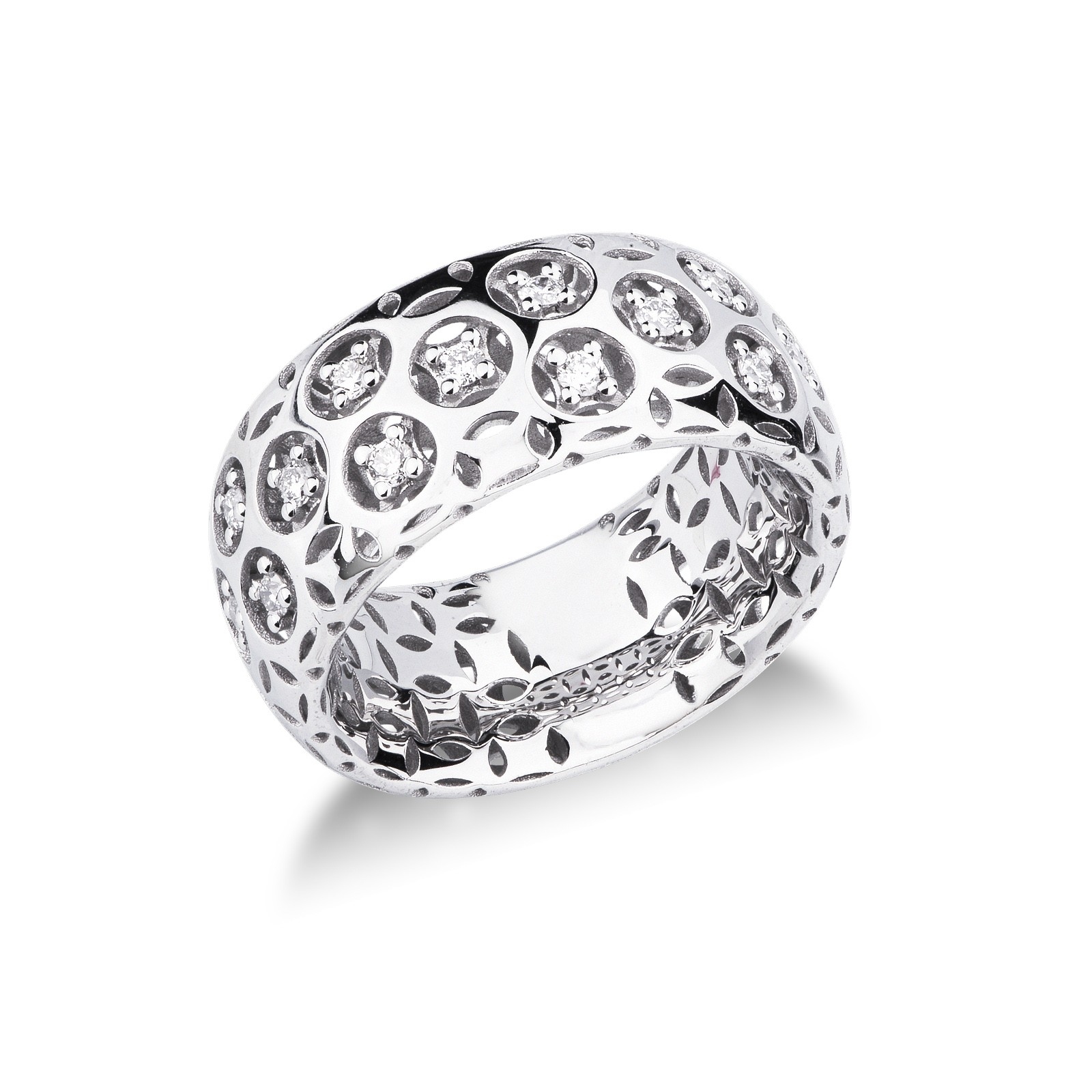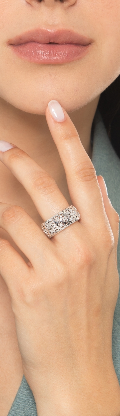 Bague à jonc ajouré en or blanc 18k avec diamants