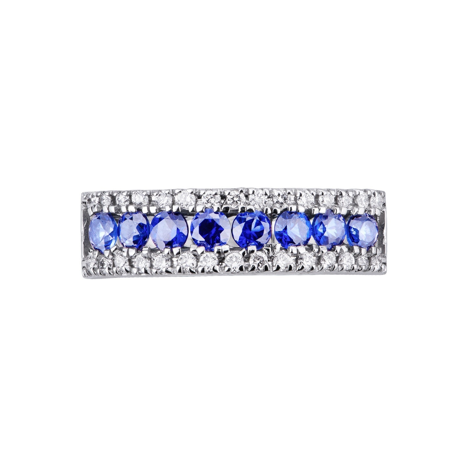 Bague bande centrale avec diamants et saphirs en Or 18k