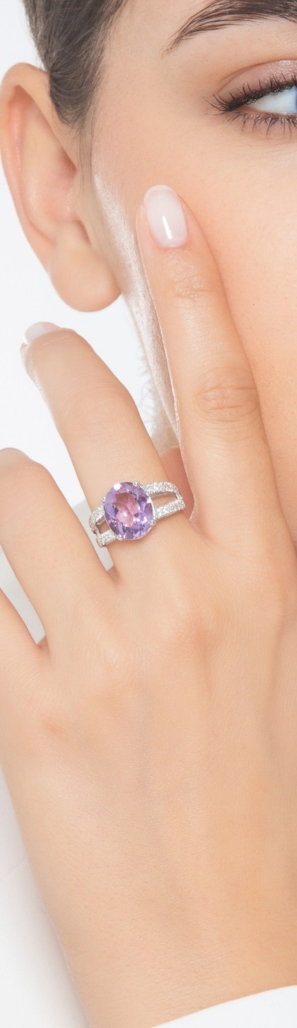 Bague bandeau en or blanc 18 carats avec améthyste et diamants