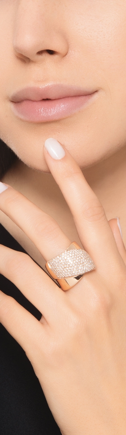 Bague bandeau or rose 18K diamants brillants