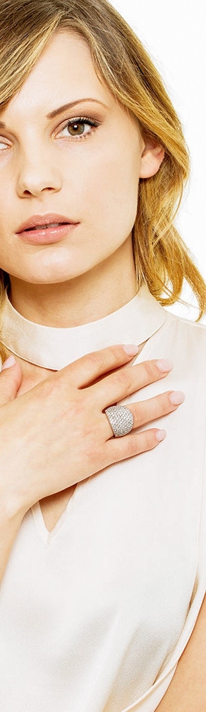 Bague en or blanc 18 carats sertie d'un pavé de diamants
