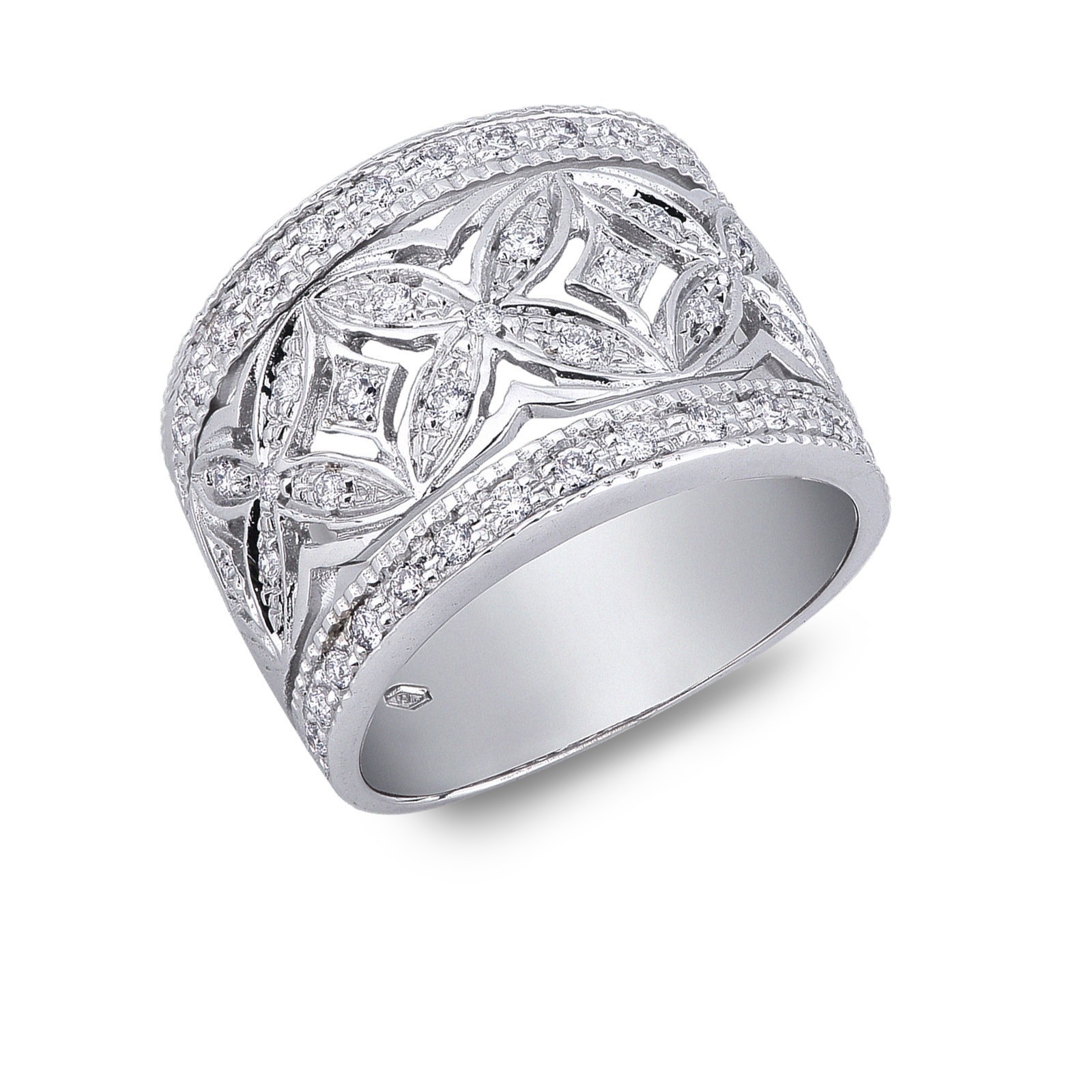 Bague en or blanc 18k avec diamants brillants formant des ellipses