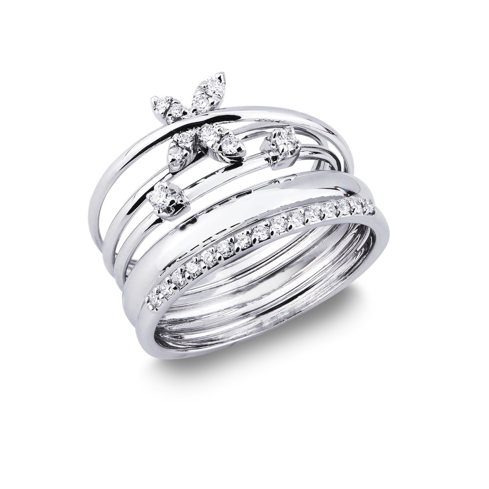 Bague en or blanc 18k avec diamants motif papillon