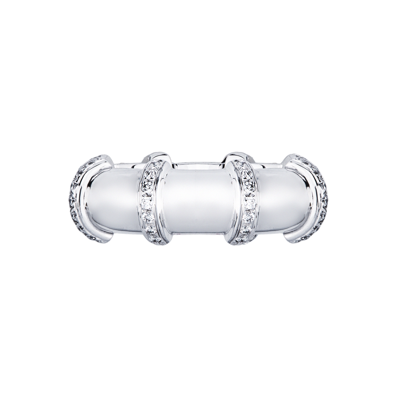 Élégante bague en or blanc 18 carats, sertie de diamants taille brillant, couleur H et pureté VS. Ce modèle est ajustable pour les tailles de 13 à 17. Pour toute autre taille, veuillez contacter notre service client pour un devis personnalisé.