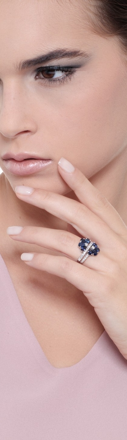 Bague en or blanc?18k avec saphirs bleus et diamants effet pétales