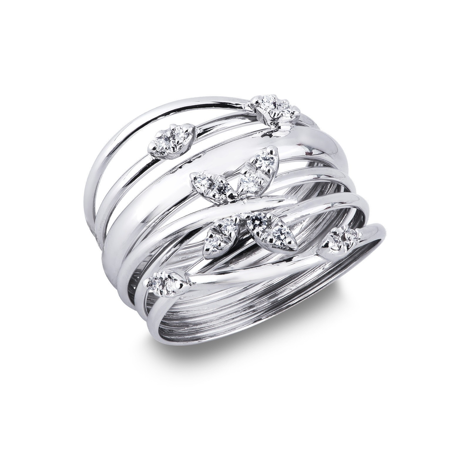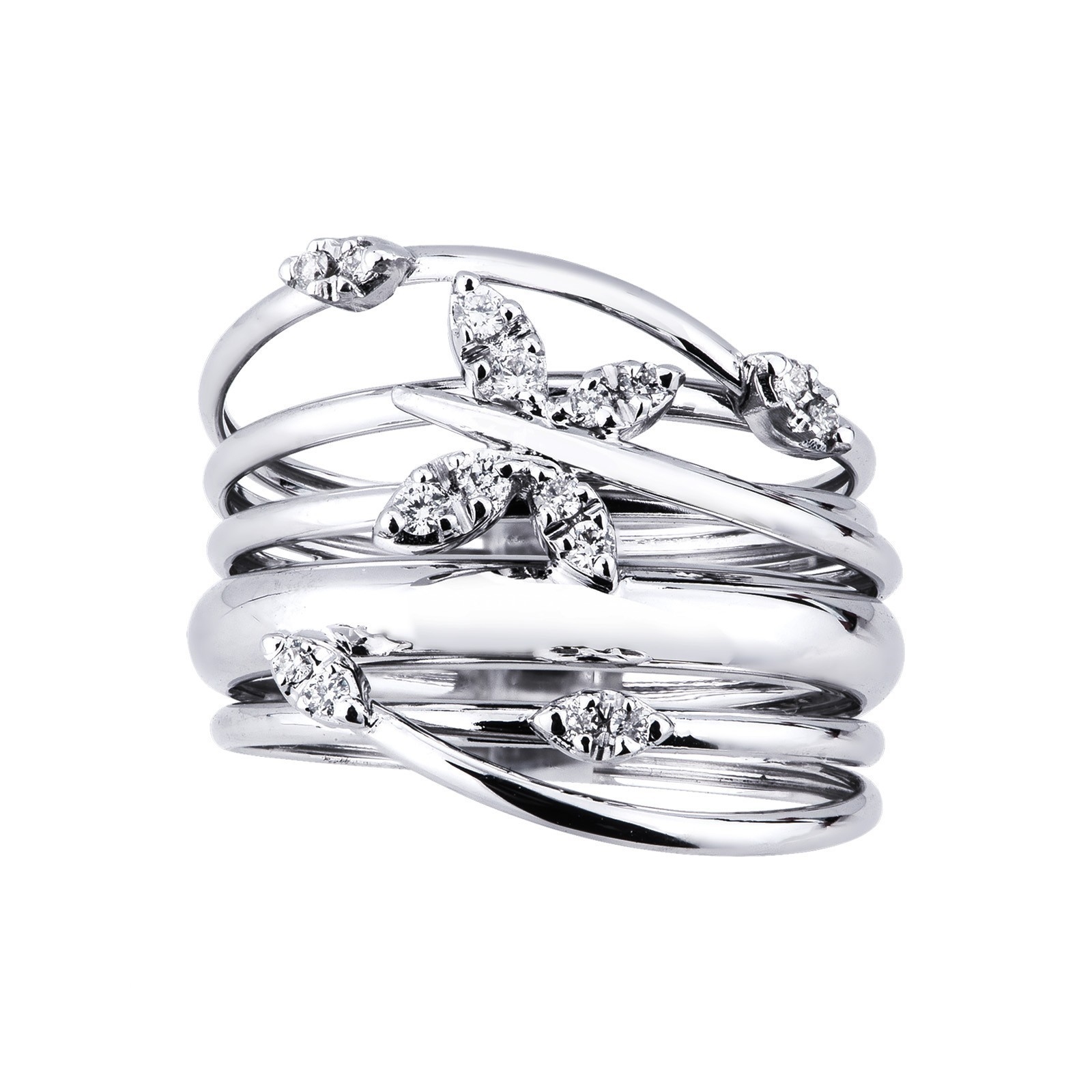 Bague jonc en or blanc 18k avec diamants et motif papillon