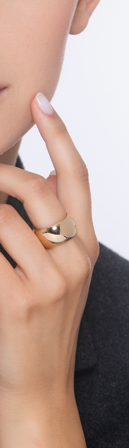 Bague de style manchette en or jaune 18 carats avec une finition polie et lumineuse. Un bijou intemporel qui se distingue par sa simplicite elegante et son caractere affirme.