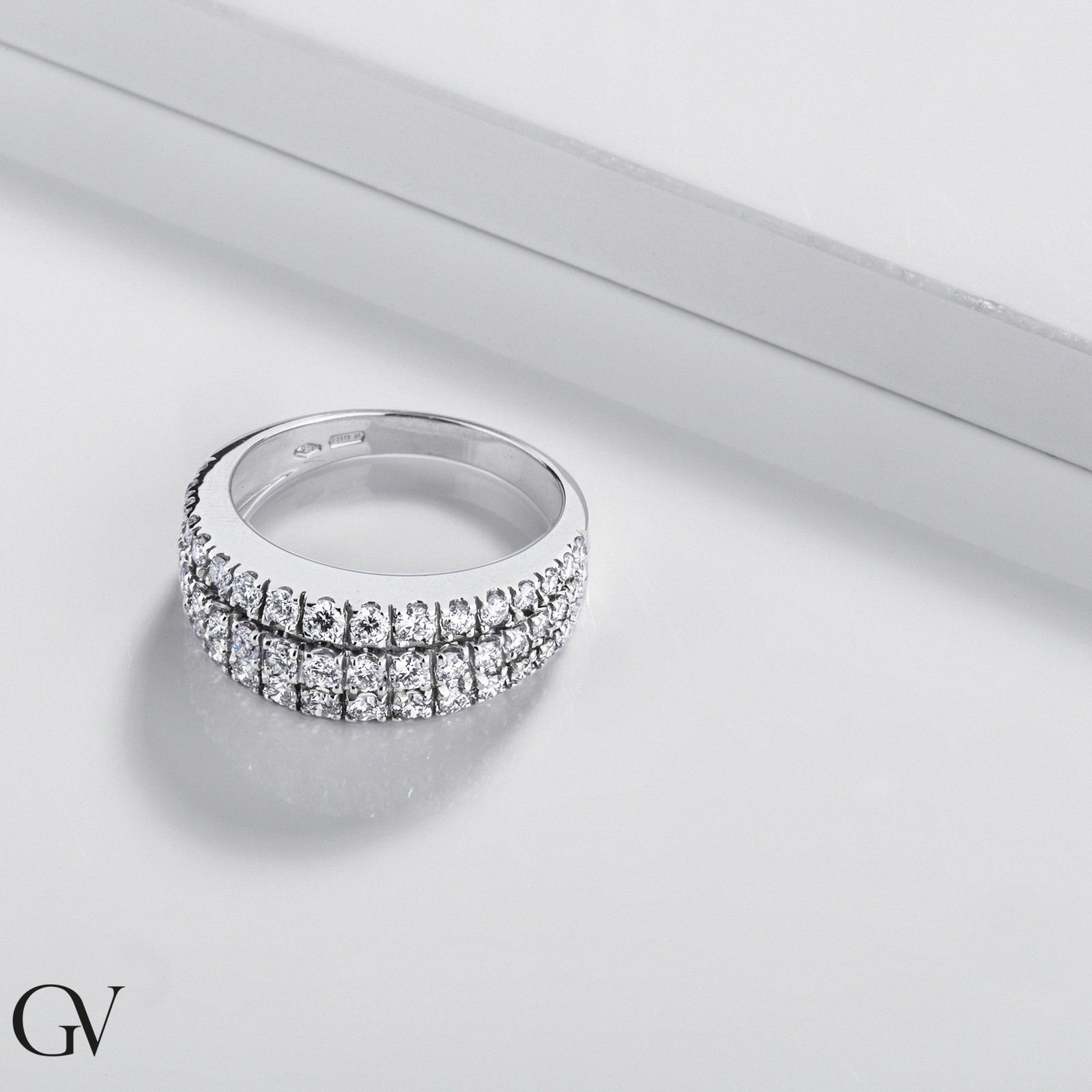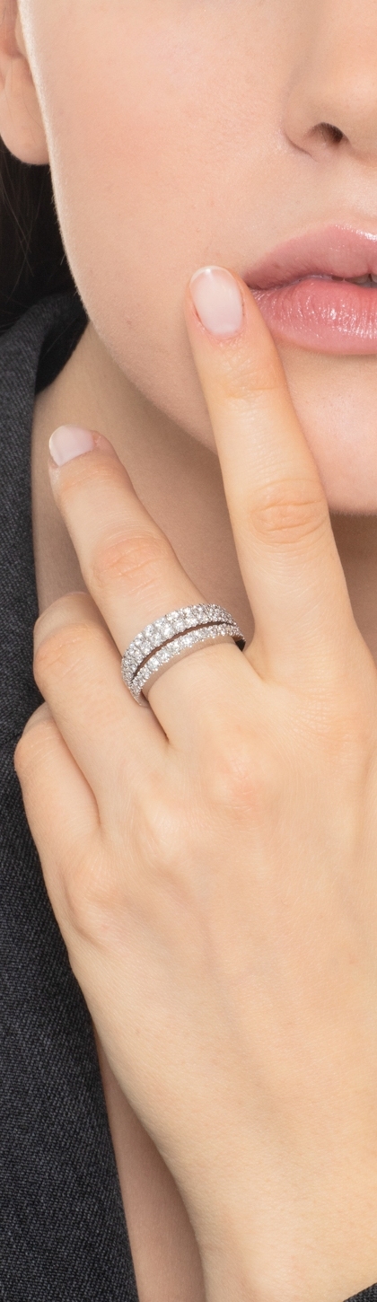 Bague Or Blanc 750/1000 Alliance Triple Rangs Diamant 1.29 ct