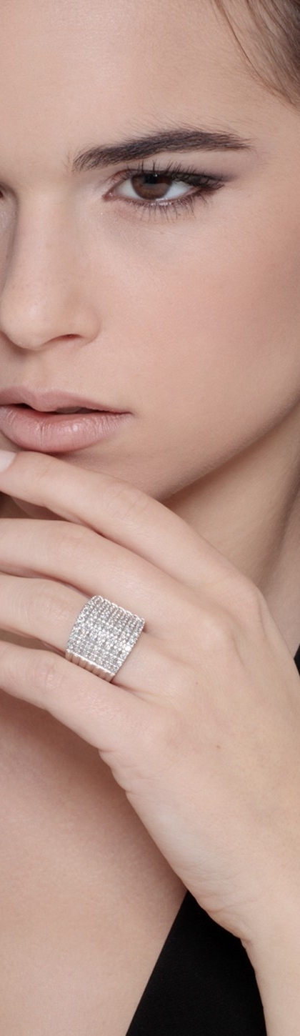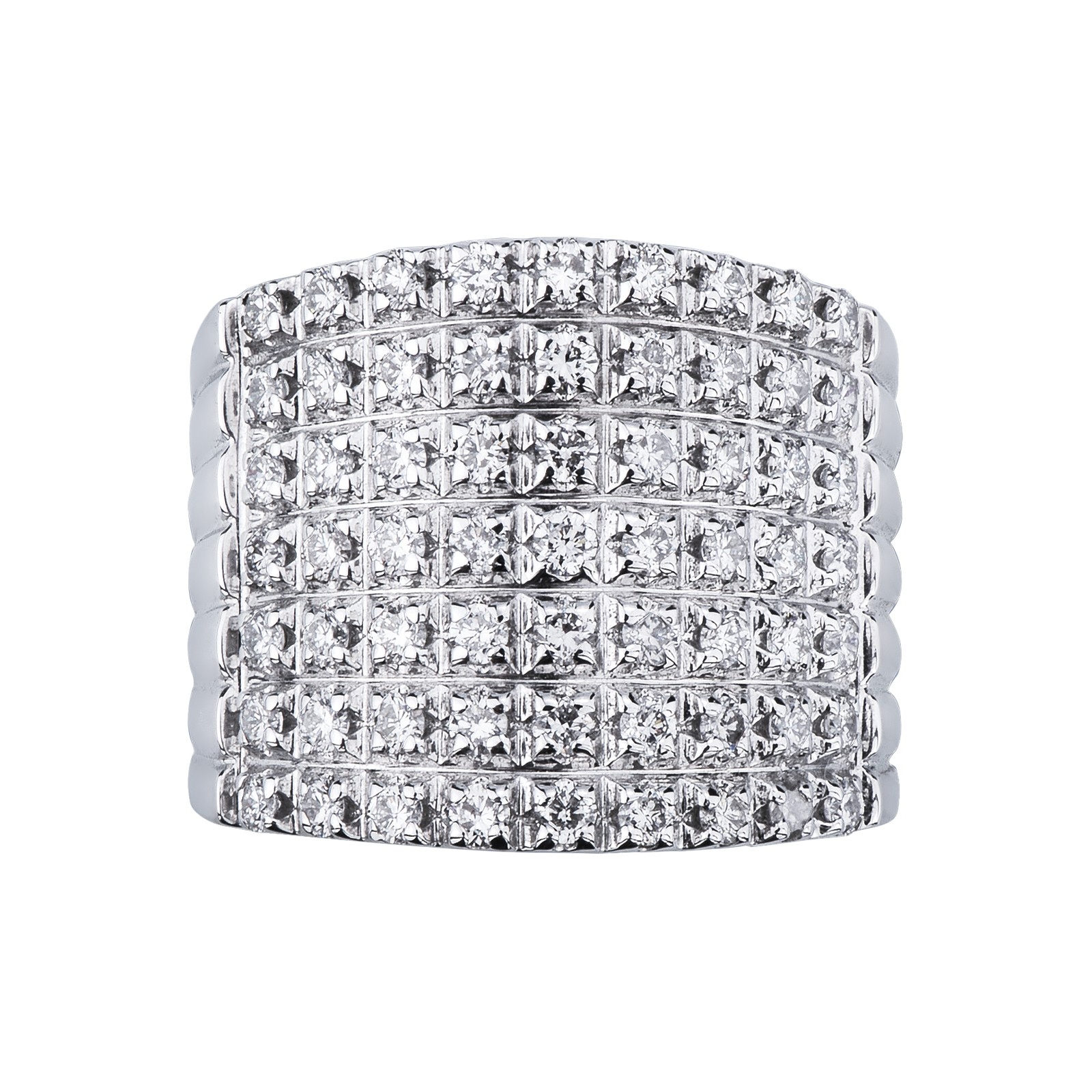 Bague à sept rangs en or blanc 18 carats, sertie de diamants taille brillant disposés en dégradé. Les diamants, de couleur H et de pureté VS, offrent une luminosité exceptionnelle et un style raffiné. Une création élégante et intemporelle qui sublime la féminité.