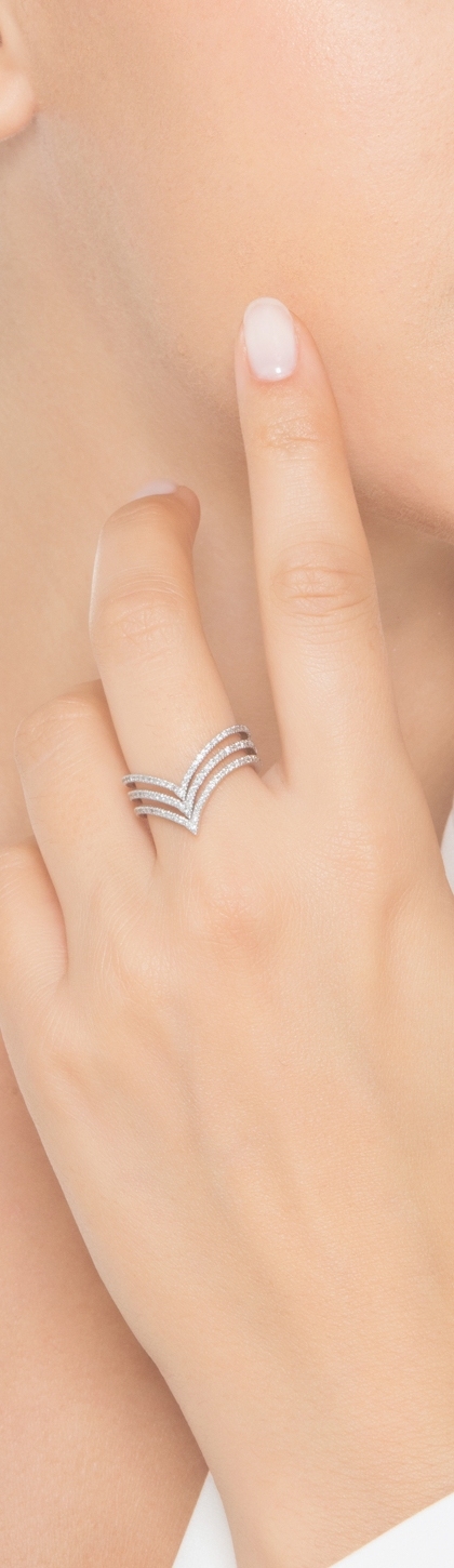 Bague trois rangs en Or Blanc 18k avec Diamants
