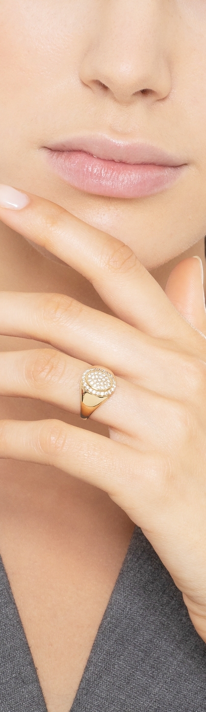 Anneau petit doigt en or jaune 18k pavé de zircons