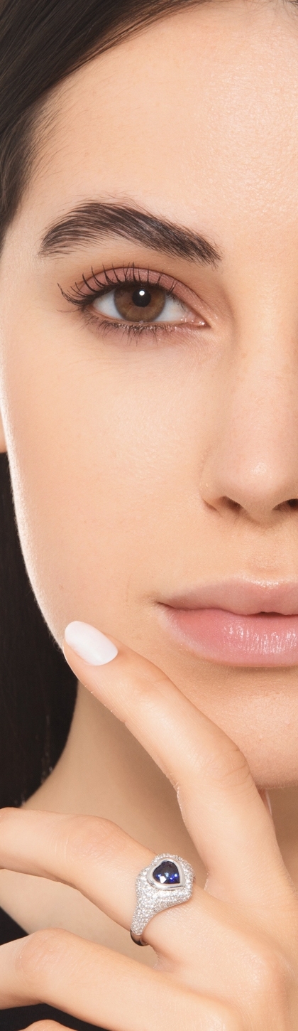 Bague petit doigt en or blanc 18k avec saphir et diamants