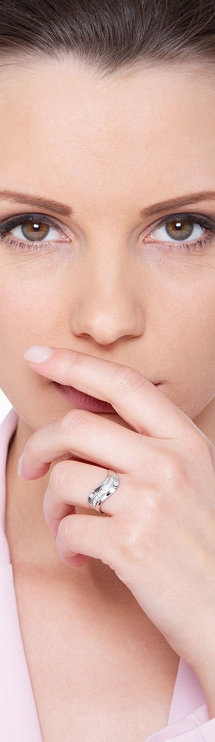 Anneau féminin ondulé Or Blanc 18k avec diamants