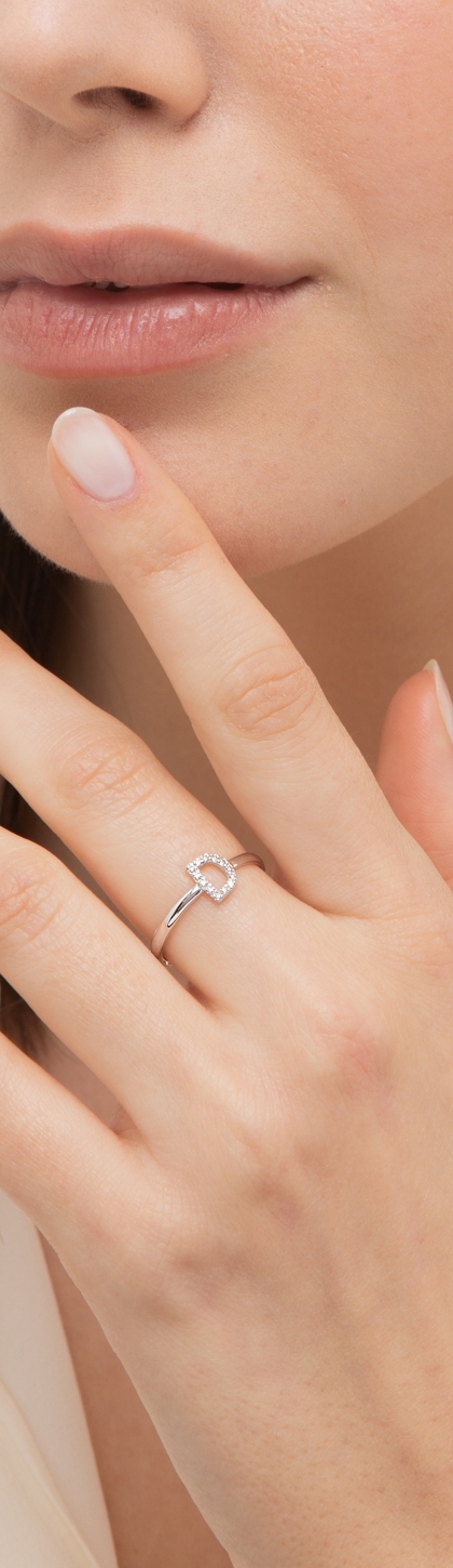 Bague avec lettre D en or blanc et diamants