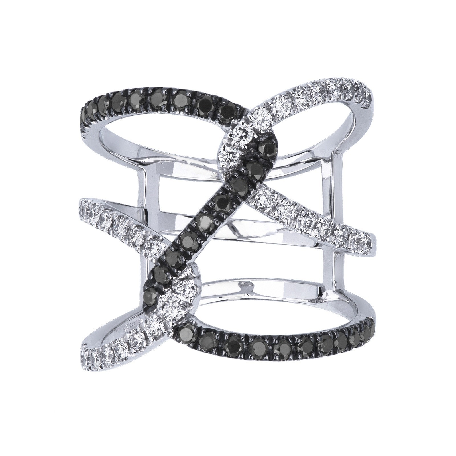 Bague croisée ondulée en or blanc 18k avec diamants