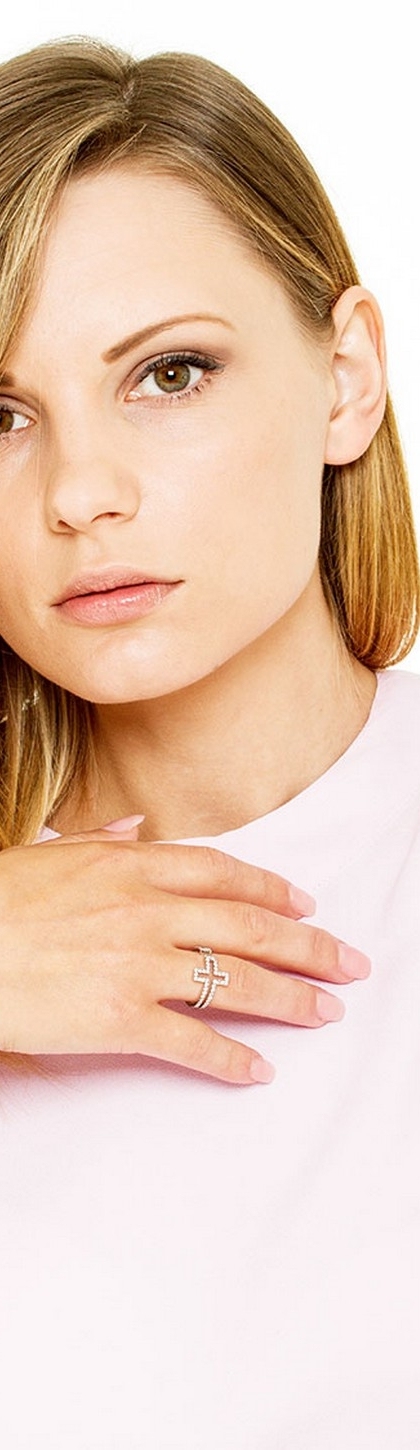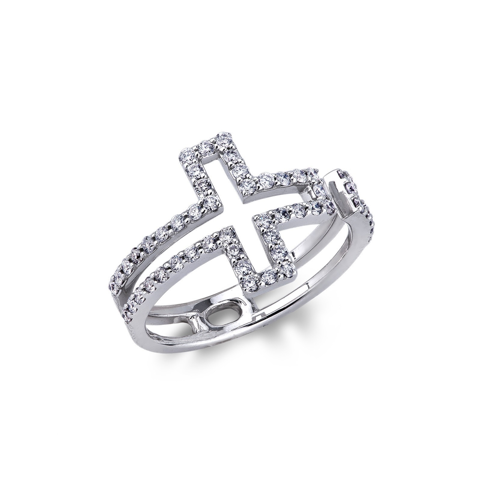 Bague croix en bande en or blanc 18k avec diamants