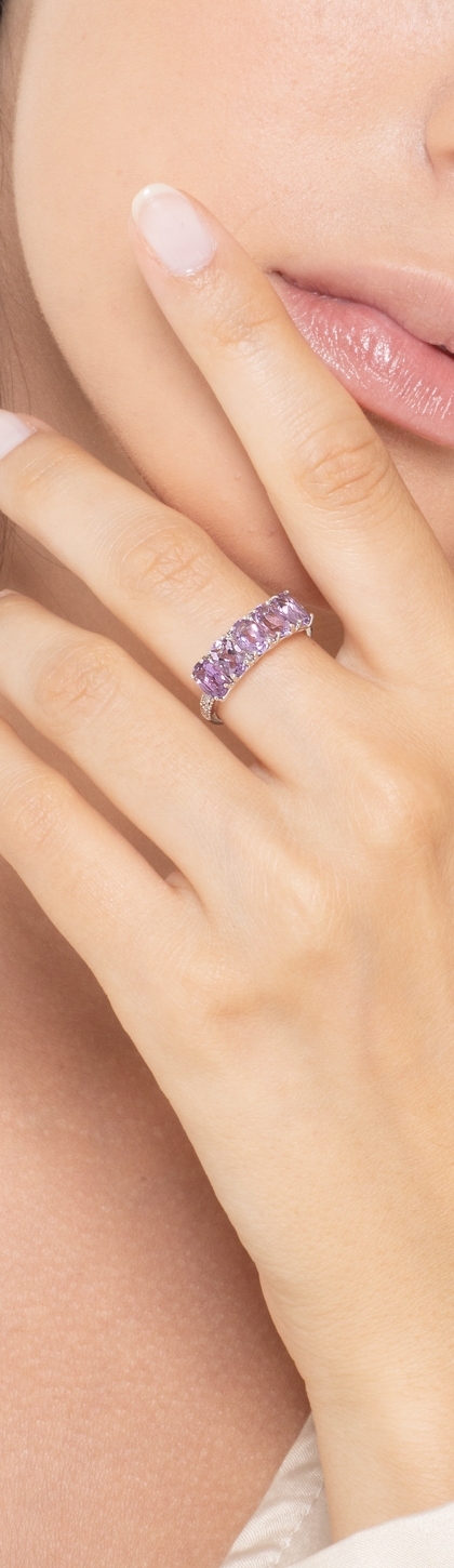 Bague en or blanc 18 carats avec 5 améthystes ovales et diamants