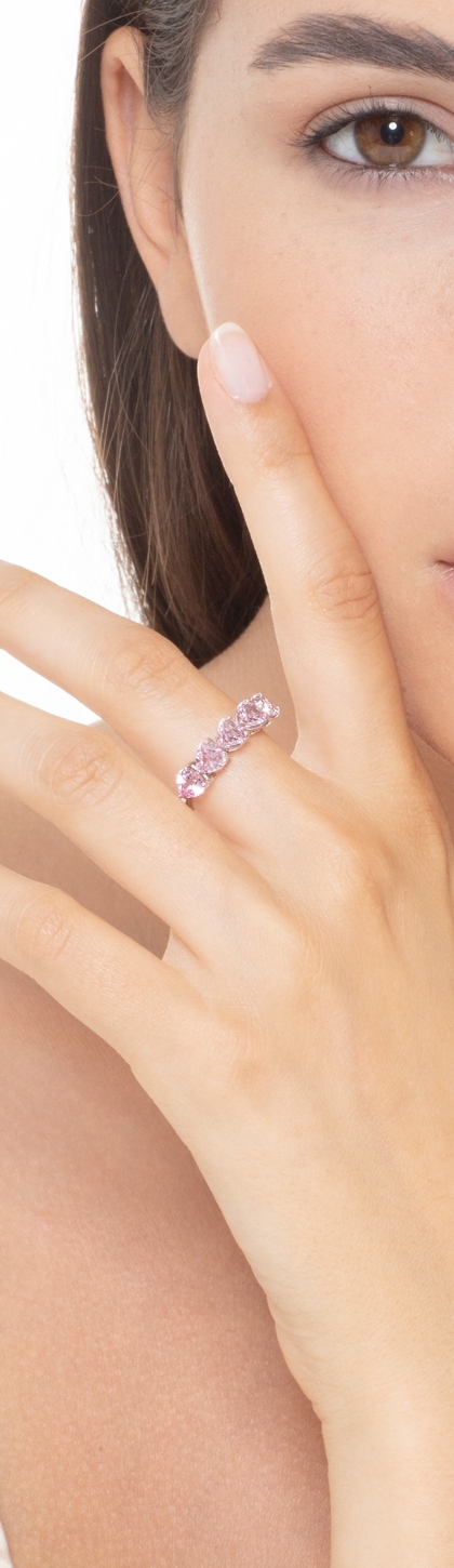 Bague en or blanc 18 carats avec des saphirs roses taillés en forme de cœur