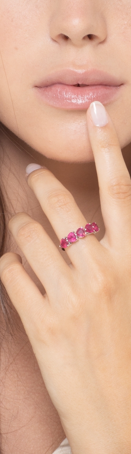 Bague en or blanc 18 carats avec rubis taille cœur