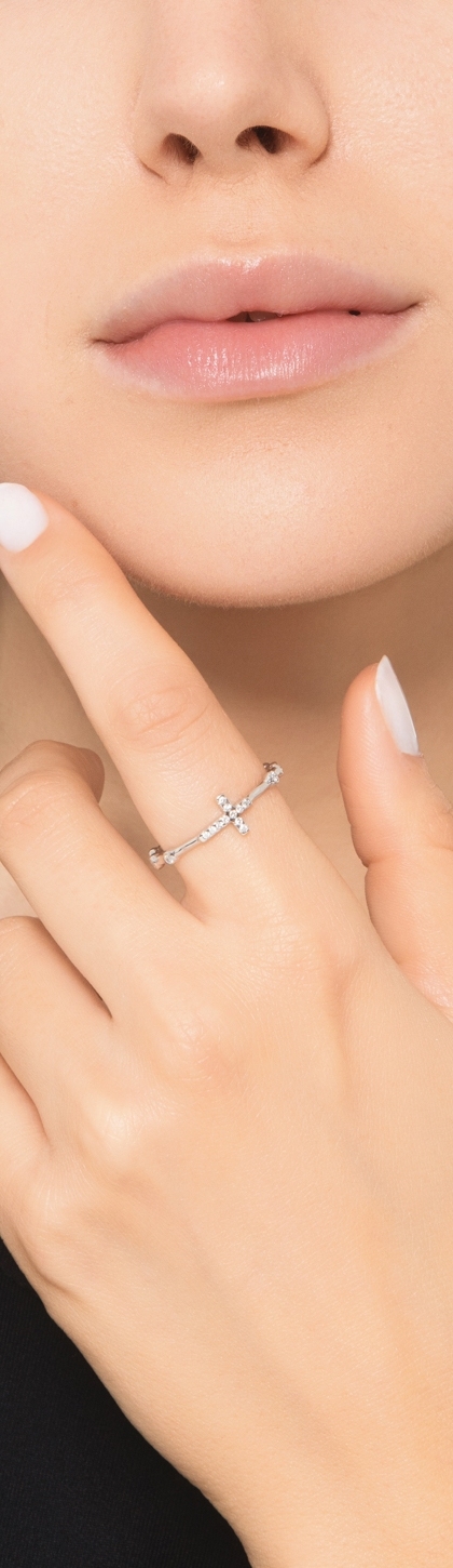 Bague en or blanc 18k avec insert en forme de croix et diamants