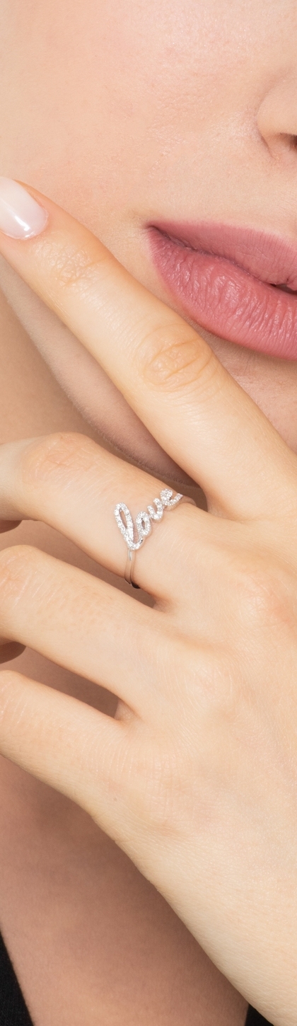 Bague en or blanc 18k avec l'inscription Love en diamants