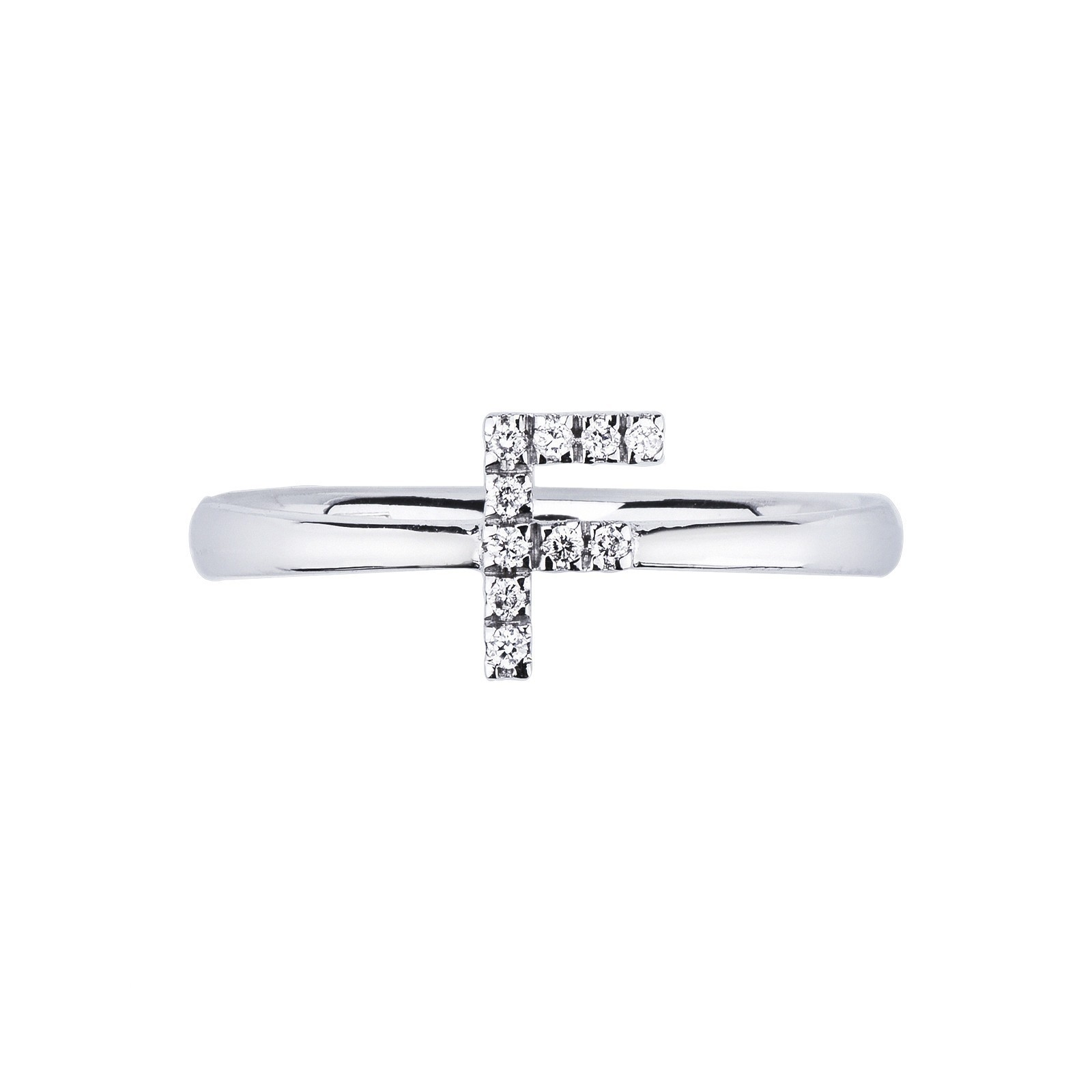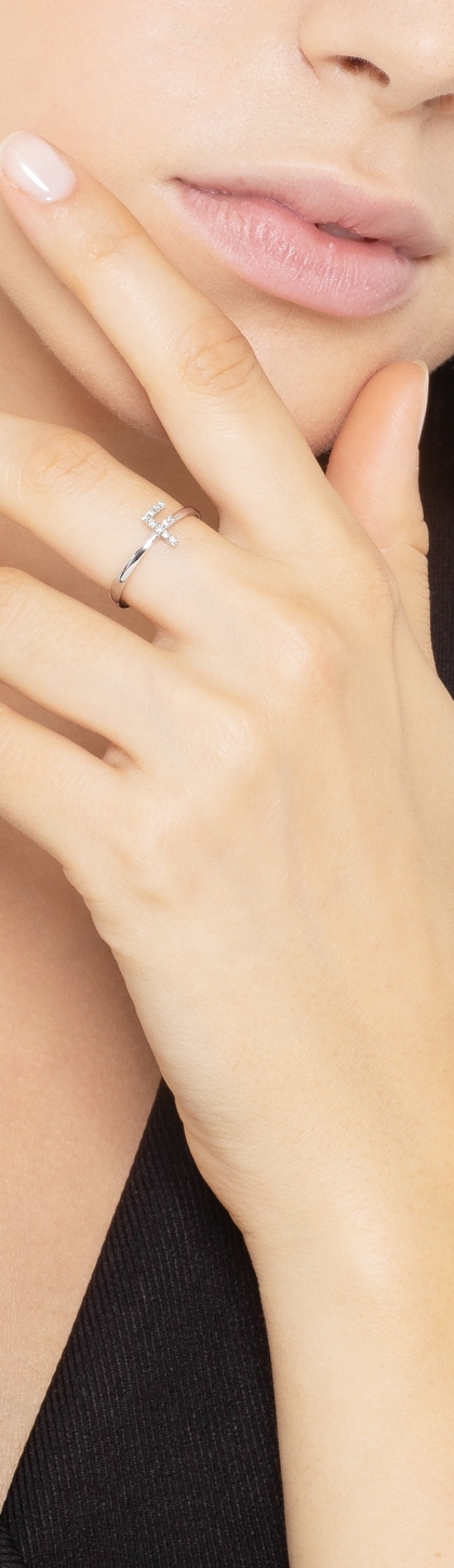 Bague en or blanc 18k avec lettre F sertie de diamants