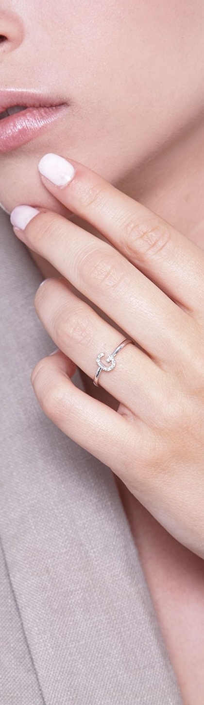 Bague en or blanc 18k avec lettre G sertie de diamants