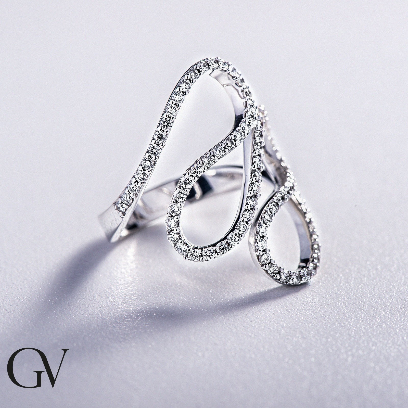 Bague en or blanc 18k avec lignes ondulées et diamants
