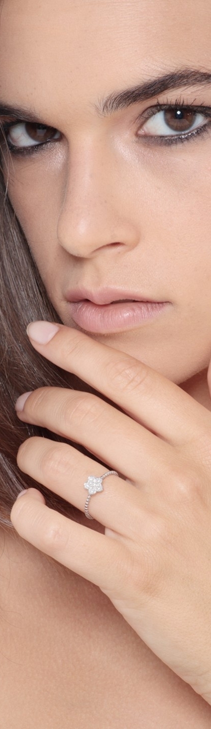 Bague en or blanc 18k avec une fleur sertie diamants