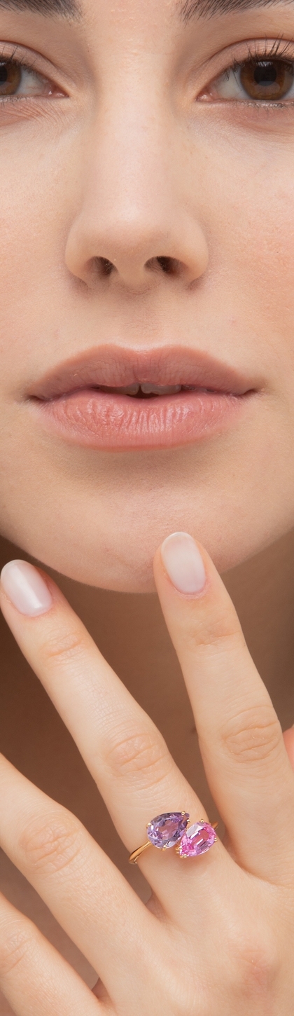 Bague en or jaune 18 carats saphir rose et améthyste