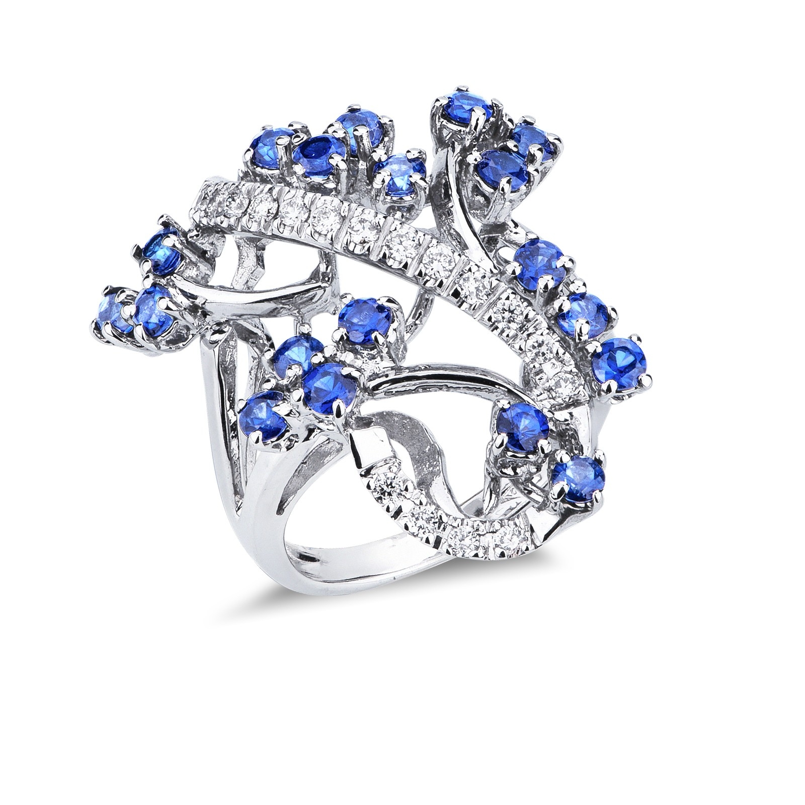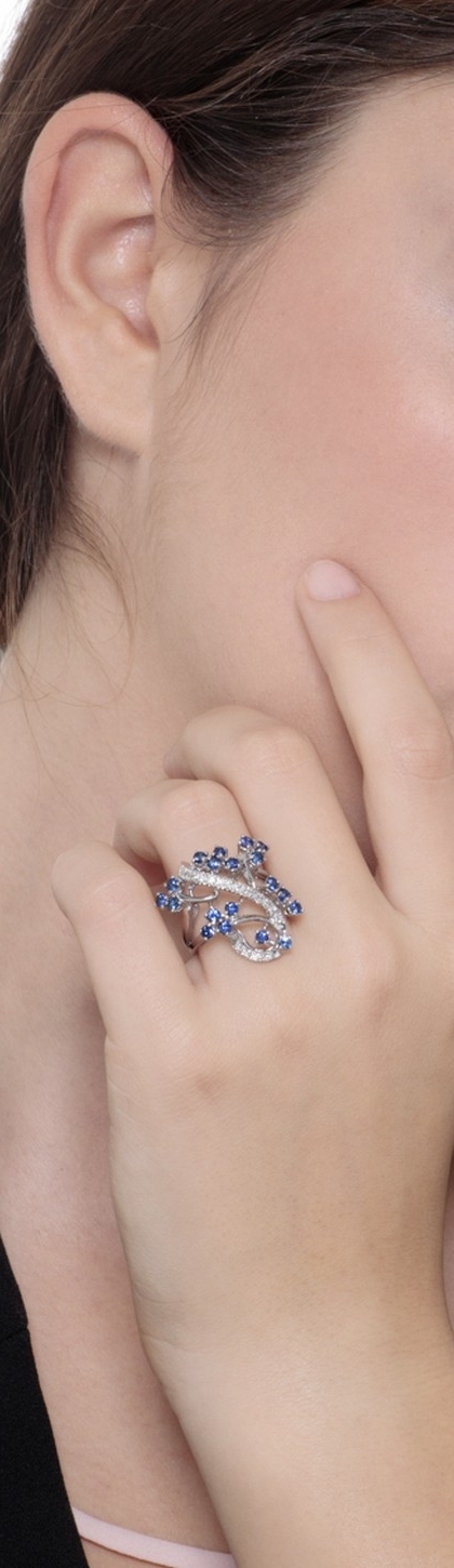 Bague fantaisie en or blanc 18k avec saphirs bleus et diamants