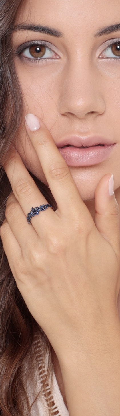 Bague Florale Or Blanc 18k avec Saphirs Bleus