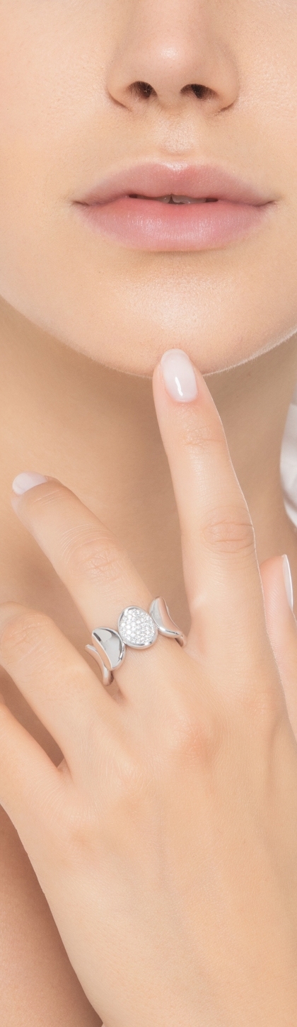 Bague élastique en or blanc 18 carats avec plaque centrale en pavé de diamants