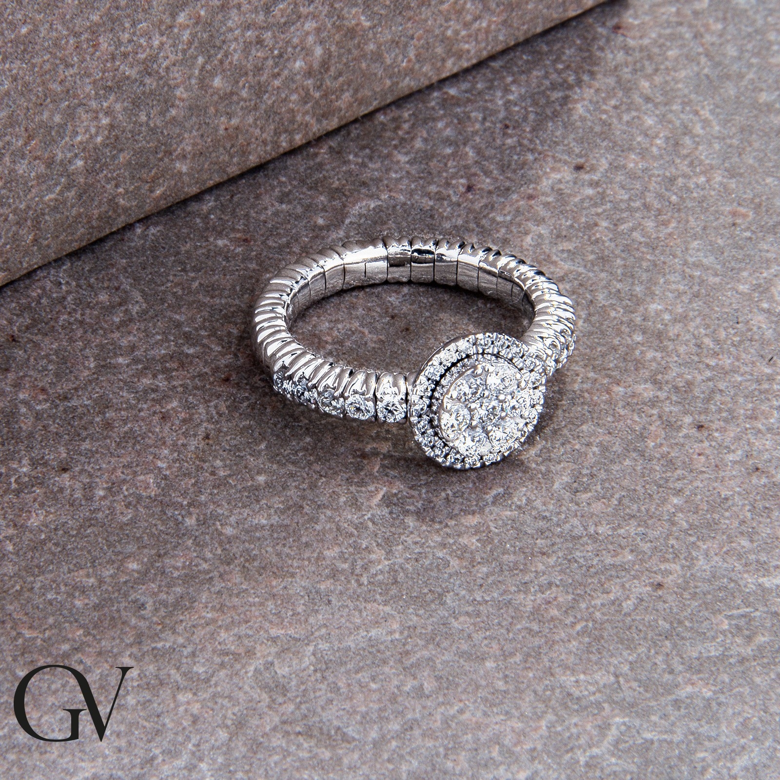 Bague élastique en or blanc 18k avec brillants