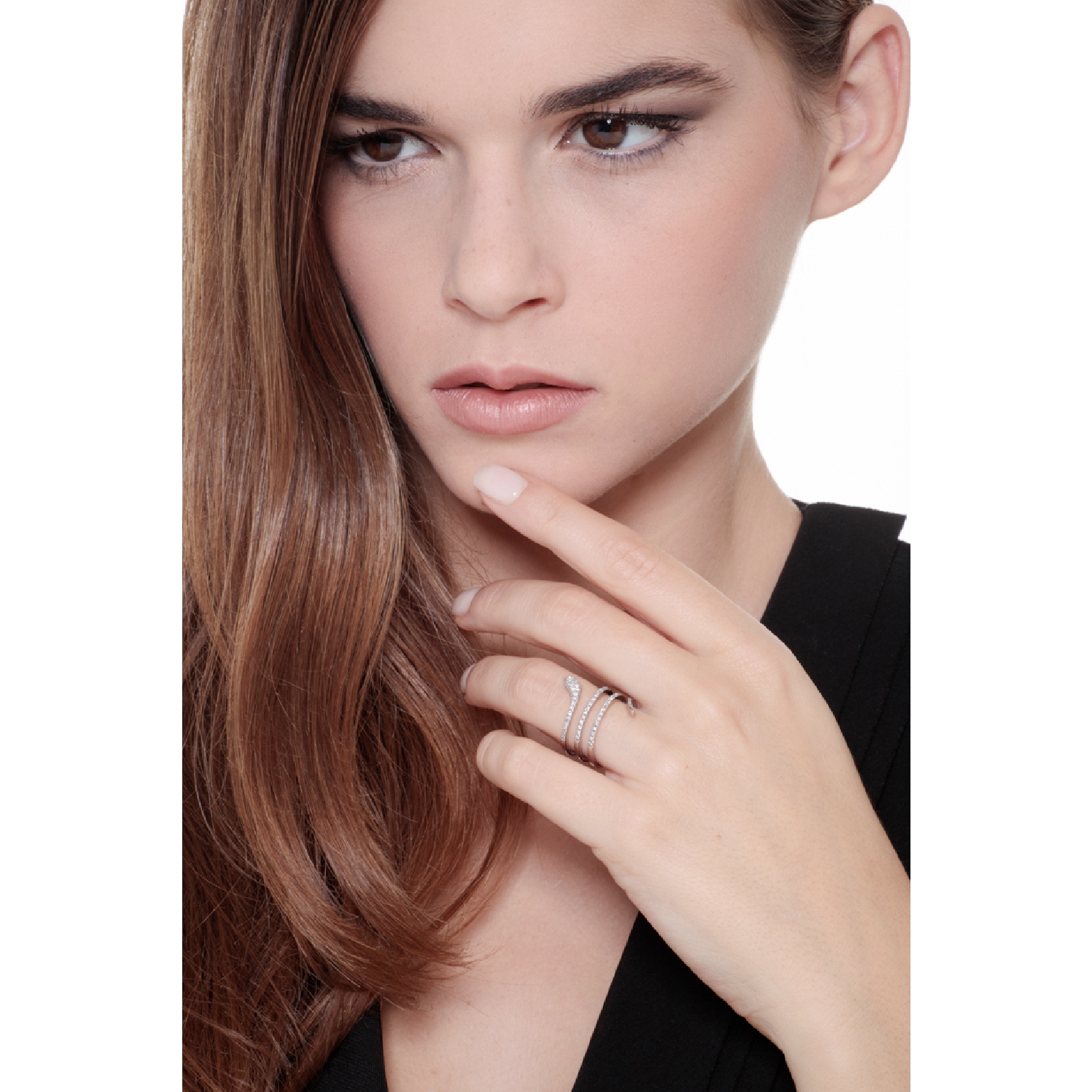 Raffinée bague en or blanc 18k au design serpent, symbole de puissance et de renaissance. Les trois spirales sont délicatement serties de diamants taille brillant de couleur H et de pureté VS, offrant une brillance intense et homogène. Cette bague serpent en or blanc avec diamants est une création de haute joaillerie au style affirmé, parfaite pour sublimer une tenue élégante ou enrichir une collection de bijoux précieux.