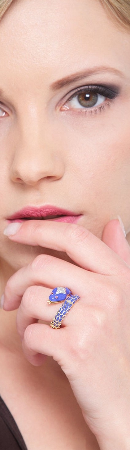 Bague serpent or jaune 18k avec diamants et rubis