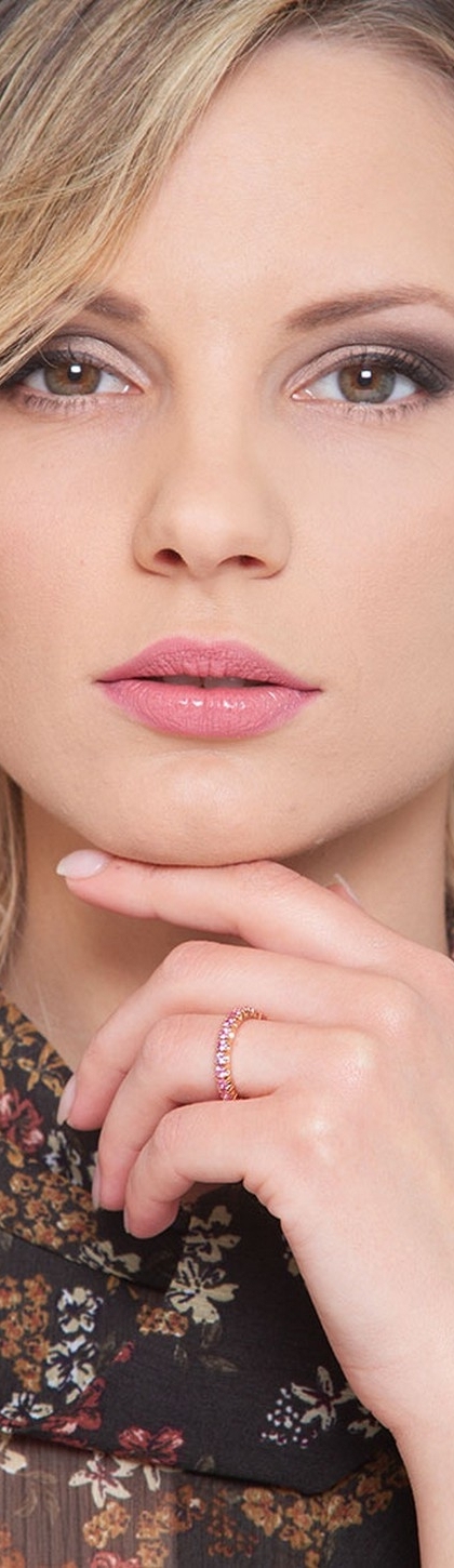 Bague Eternity en or rose 18 carats sertie saphirs roses