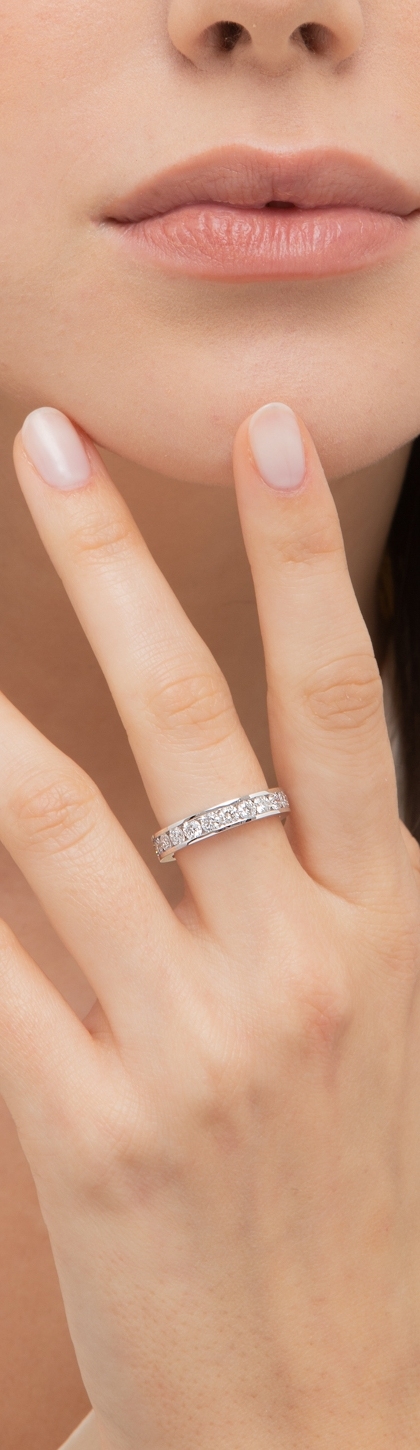 Élégance éternelle dans cette bague en or blanc 18 carats, sertie de diamants taille brillant, couleur H et pureté VS. Un bijou qui scelle un amour infini avec éclat et raffinement