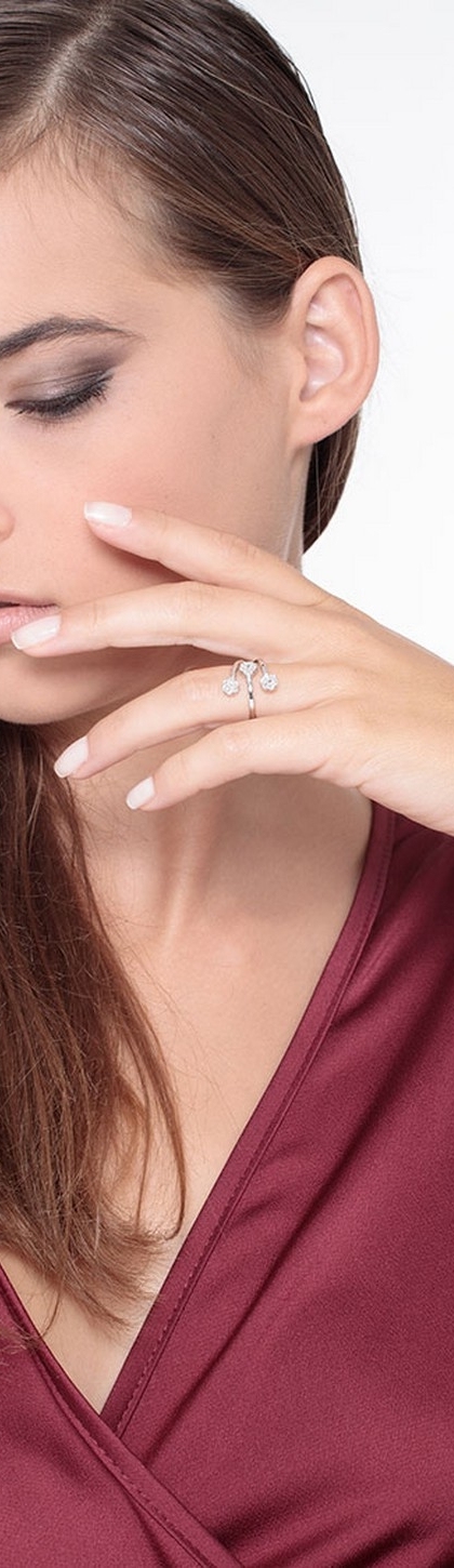 Bague illusion de diamants en or blanc 18 carats avec trois fleurs