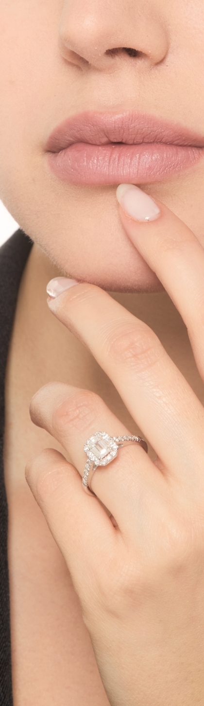 Anneau solitaire or 750 avec diamant émeraude certifié GIA CT.1,00