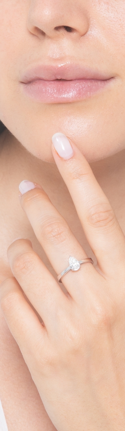 Bague avec diamant taille goutte 0,50 ct GIA en or blanc 18k