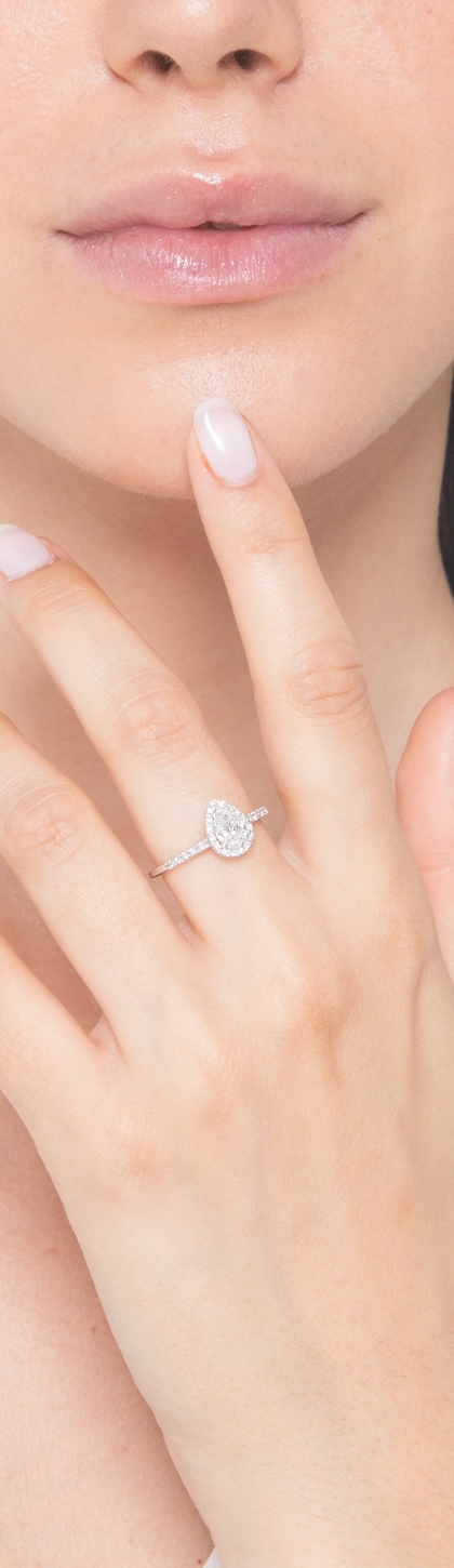 Bague avec diamant taille goutte 0,70 ct GIA en or blanc 18k