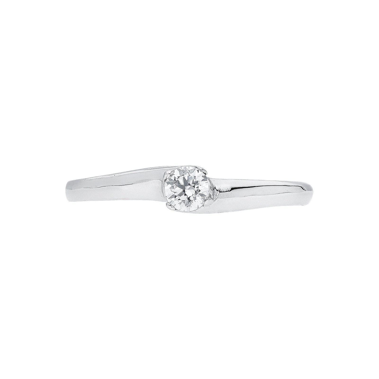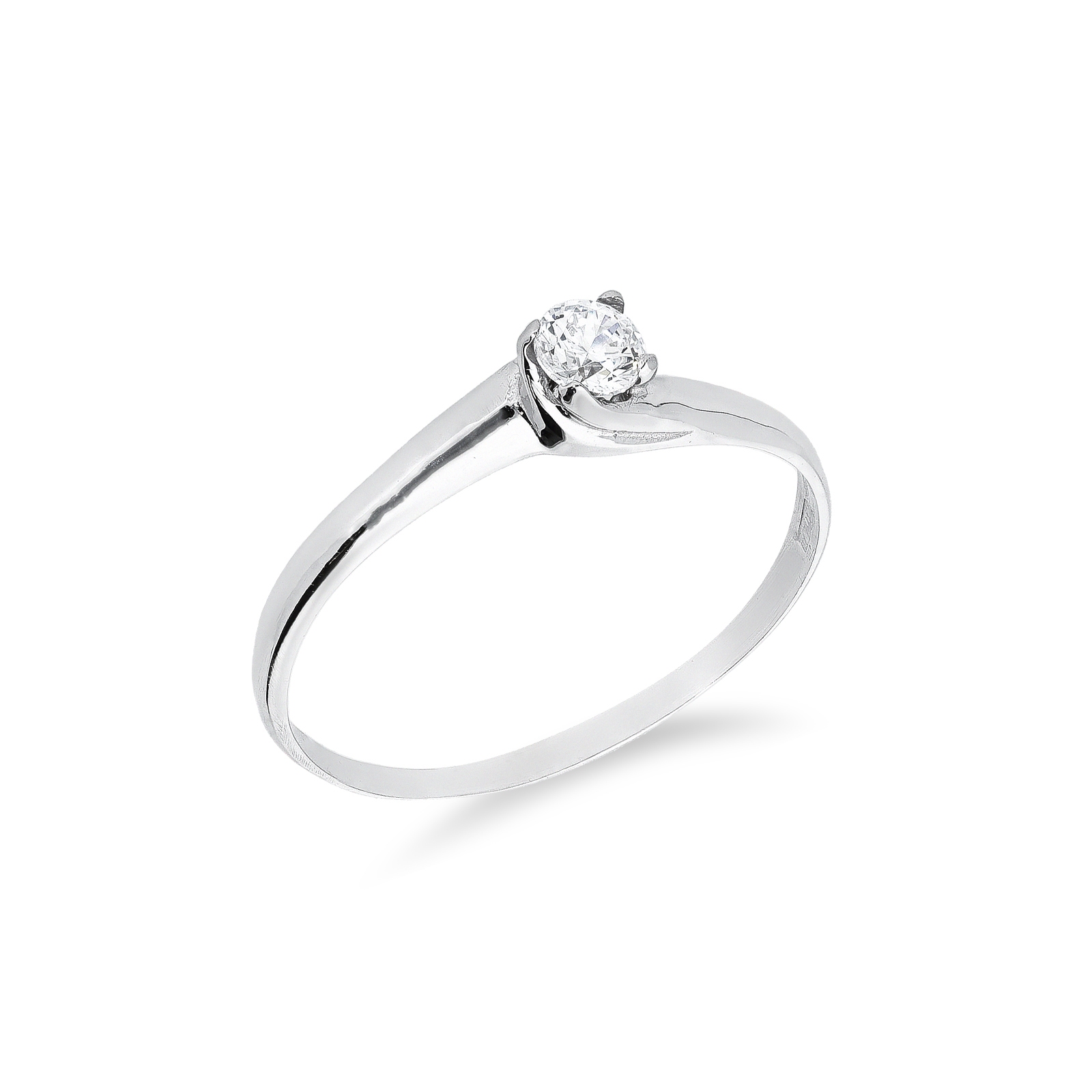 Bague solitaire à quatre griffes en or blanc 18 carats avec zircon.