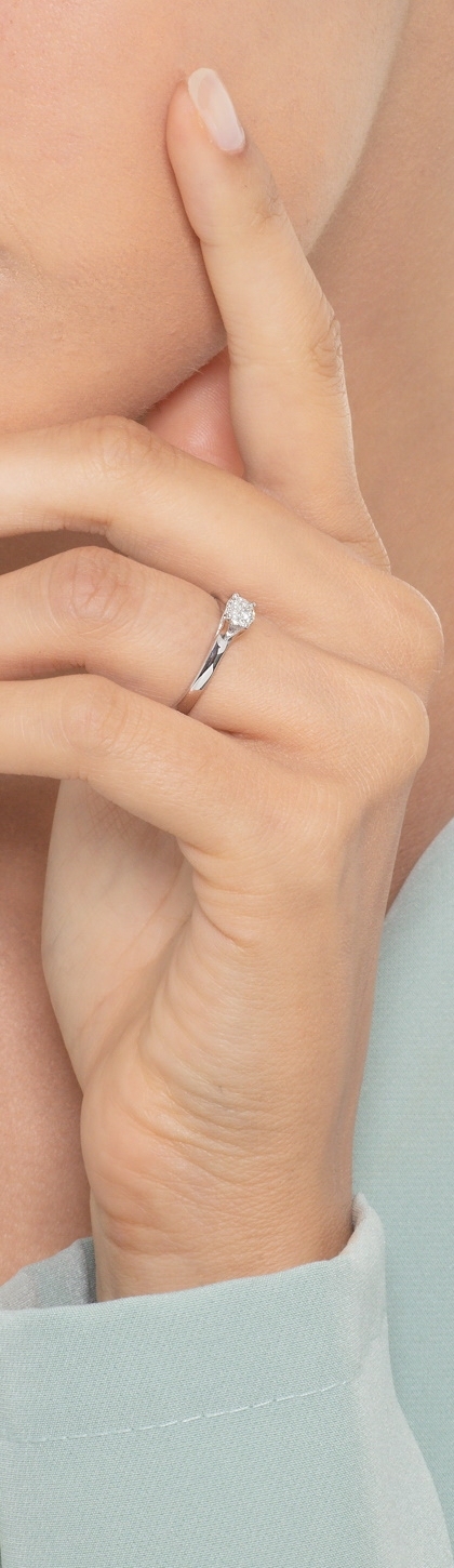 Bague diamant solitaire élégante en or blanc 18k ct. 0,40