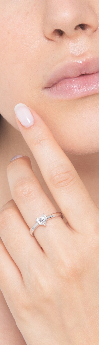 Bague diamant taille cœur 0,70 ct GIA en or blanc 18k