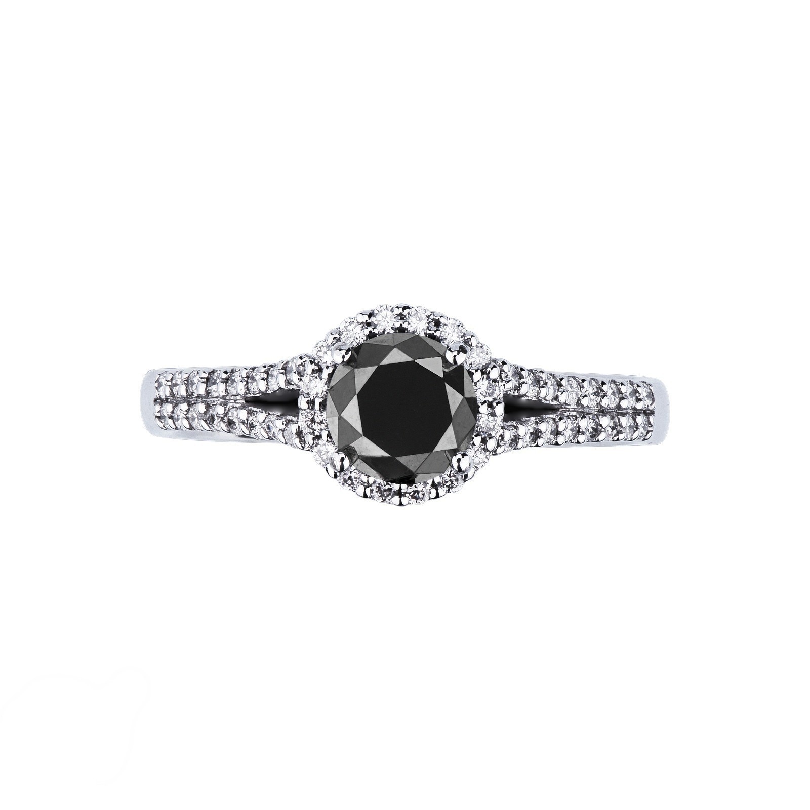 Bague en or blanc 18K avec diamant noir et diamants blancs