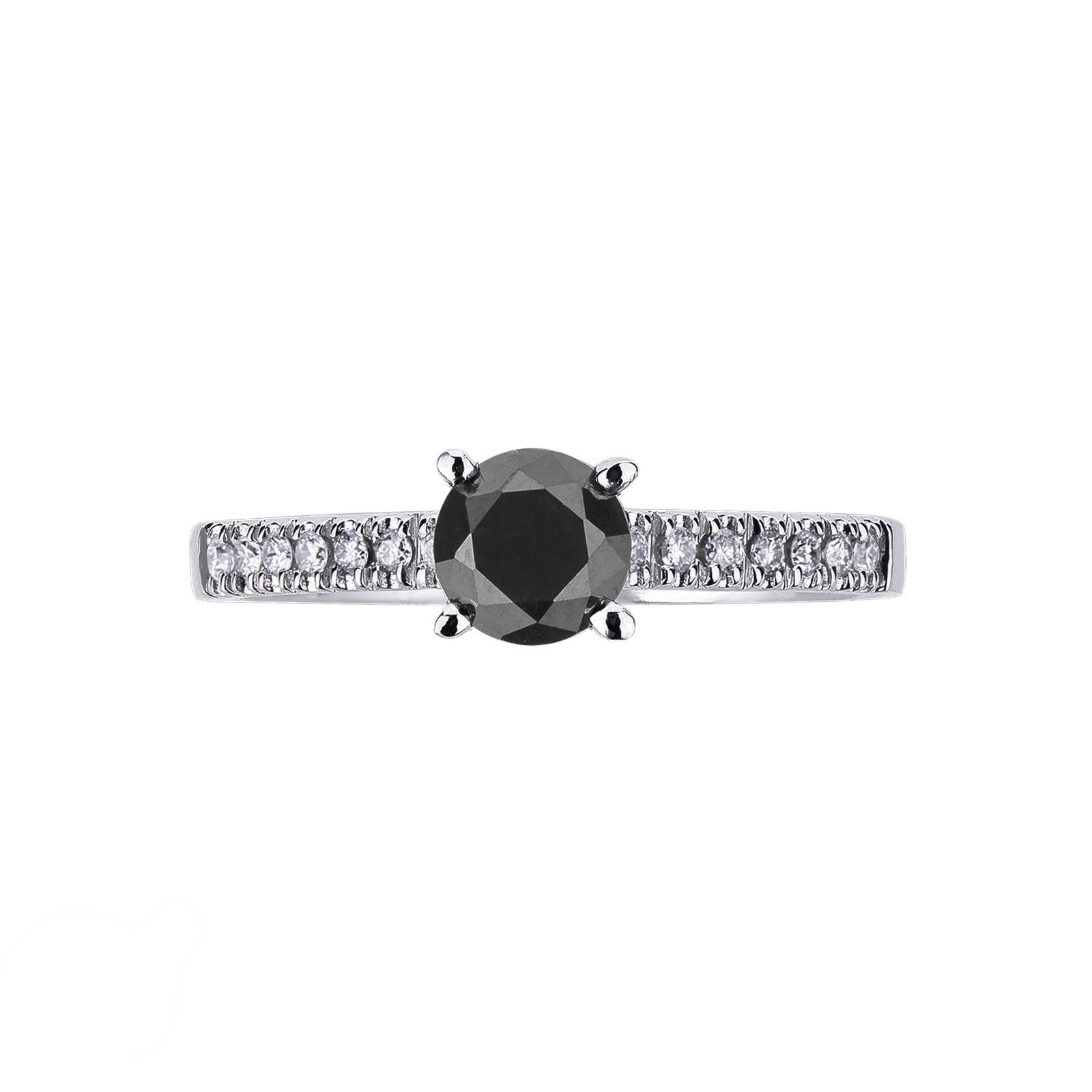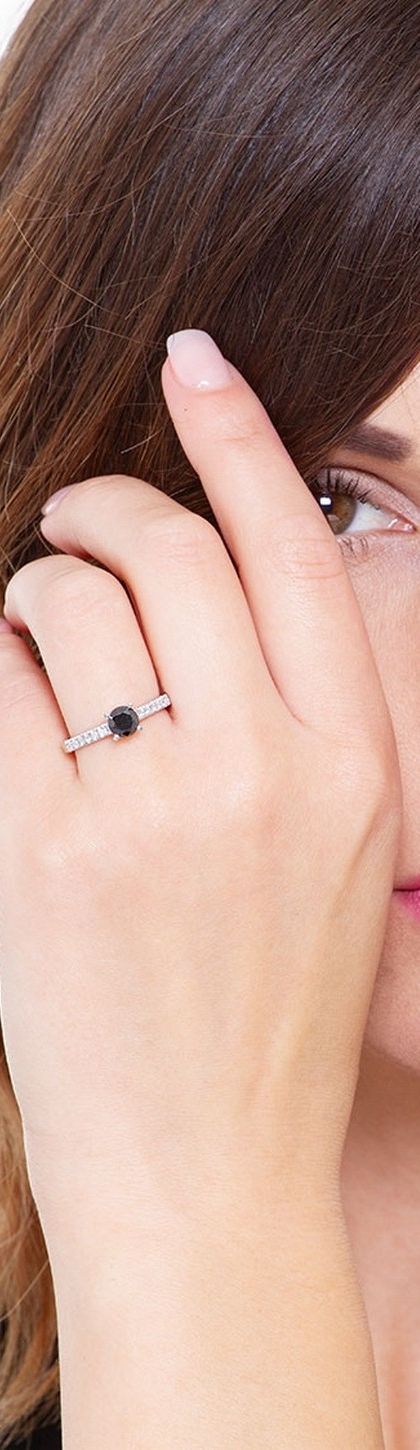 Bague en Or Blanc 18k avec Diamant Noir et Diamants Latéraux