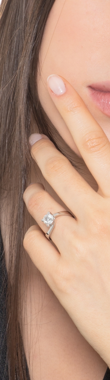 Bague solitaire à griffes en or blanc 18ct avec diamant 0,90 carats