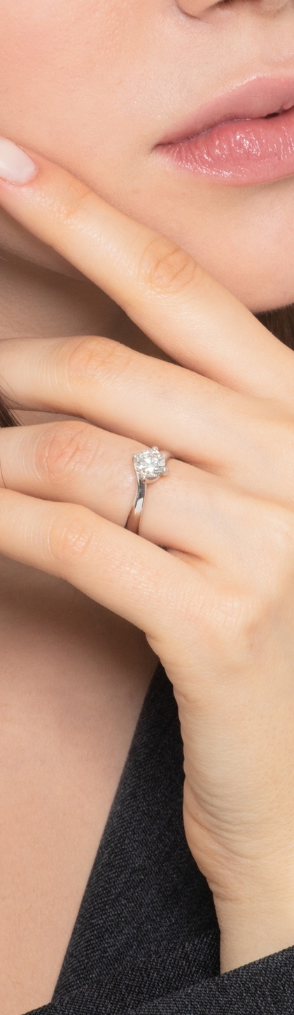 Bague solitaire à quatre griffes avec bandeau contrarié ct. 0,90